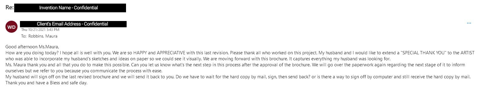 InventHelp will never make promises we can’t keep. We are not in the business of evaluating ideas and we will never guarantee any type of success. Instead, we believe in services and professional materials that can put our clients in a position to move forward with their idea. These include New Product Submission Brochures, prototype models, invention websites, patent referral services, and more!